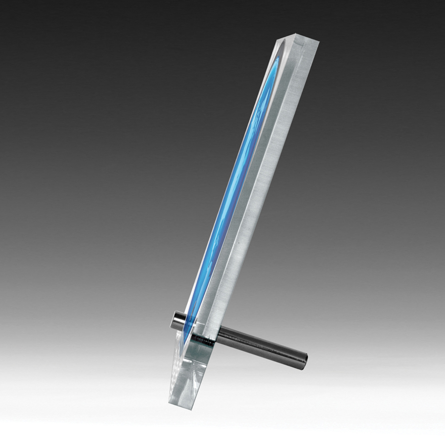 - All of these awards come with a stock globe background. This award is supported by a high polish chrome plated pin stand. Each award may be Screen Printed or Laser Engraved on front.