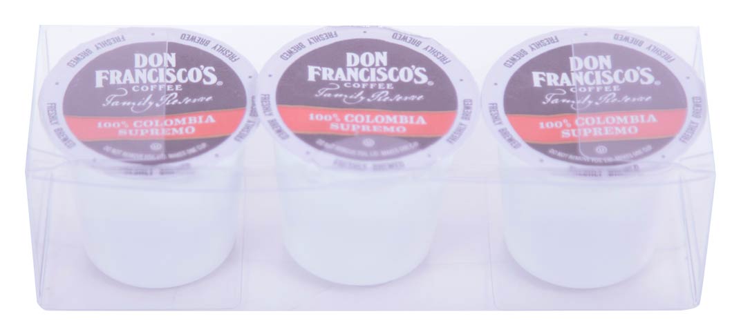 - We proudly feature single-serve pod of Don Francisco's Coffee (Kosher). Available in French Roast, Kona Blend or Colombia Supremo single-serve pods. Compatible with Keurig® coffee makers. Mix and match any of the 3 flavors into a clear packaging.