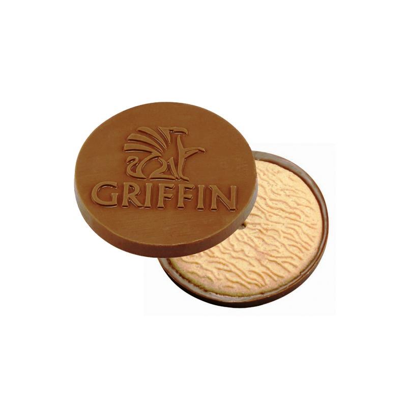 - Combine chocolate with a cookie and get a great gourmet marketing message. Our promotional chocolate logo cookies let you harness this winning combination for an elegant; unusual business tool. Vanilla wafer cookies are topped with creamy milk or dark chocolate, these cookies are great for client giveaways, business meetings, trade show tables and employee gifts.