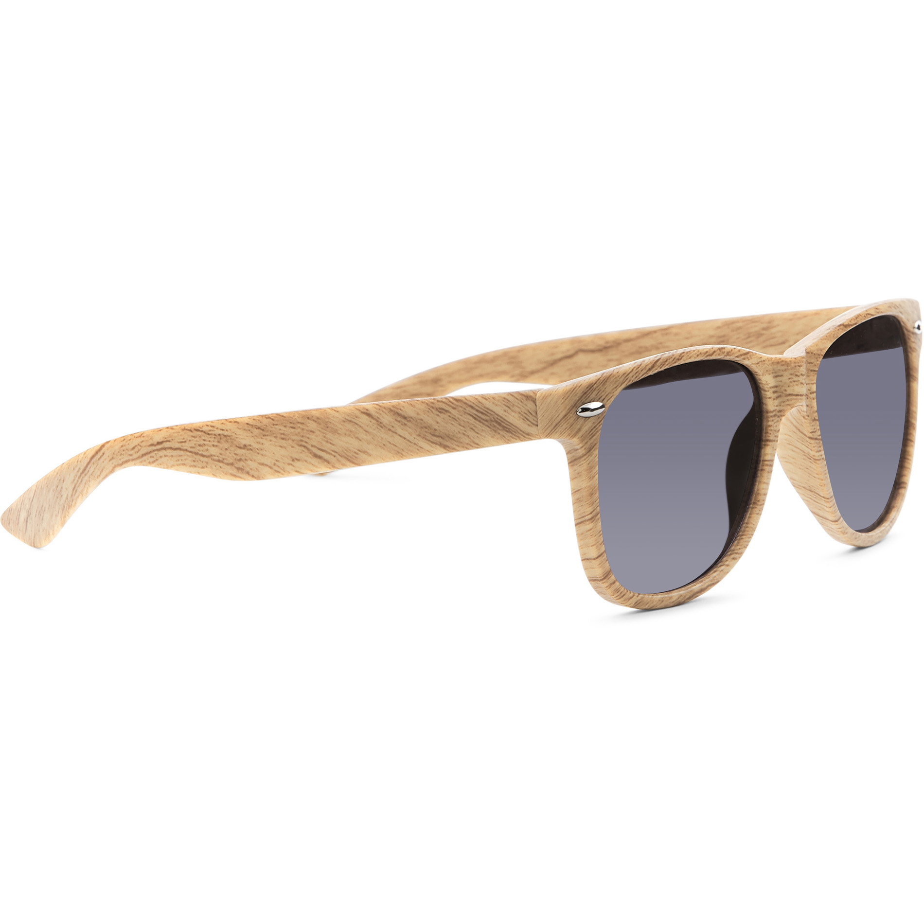 - Protect your eyes on bright days with the Allen Sunglasses. This classic folding eyewear features a trendy faux wood finish and has UV 400 protective lenses to shield your vision from the glare of the sun. Comfortable and unisex with polycarbonate construction, these standard-lens sunglasses make a great wearable accessory for all your outdoor events this summer.