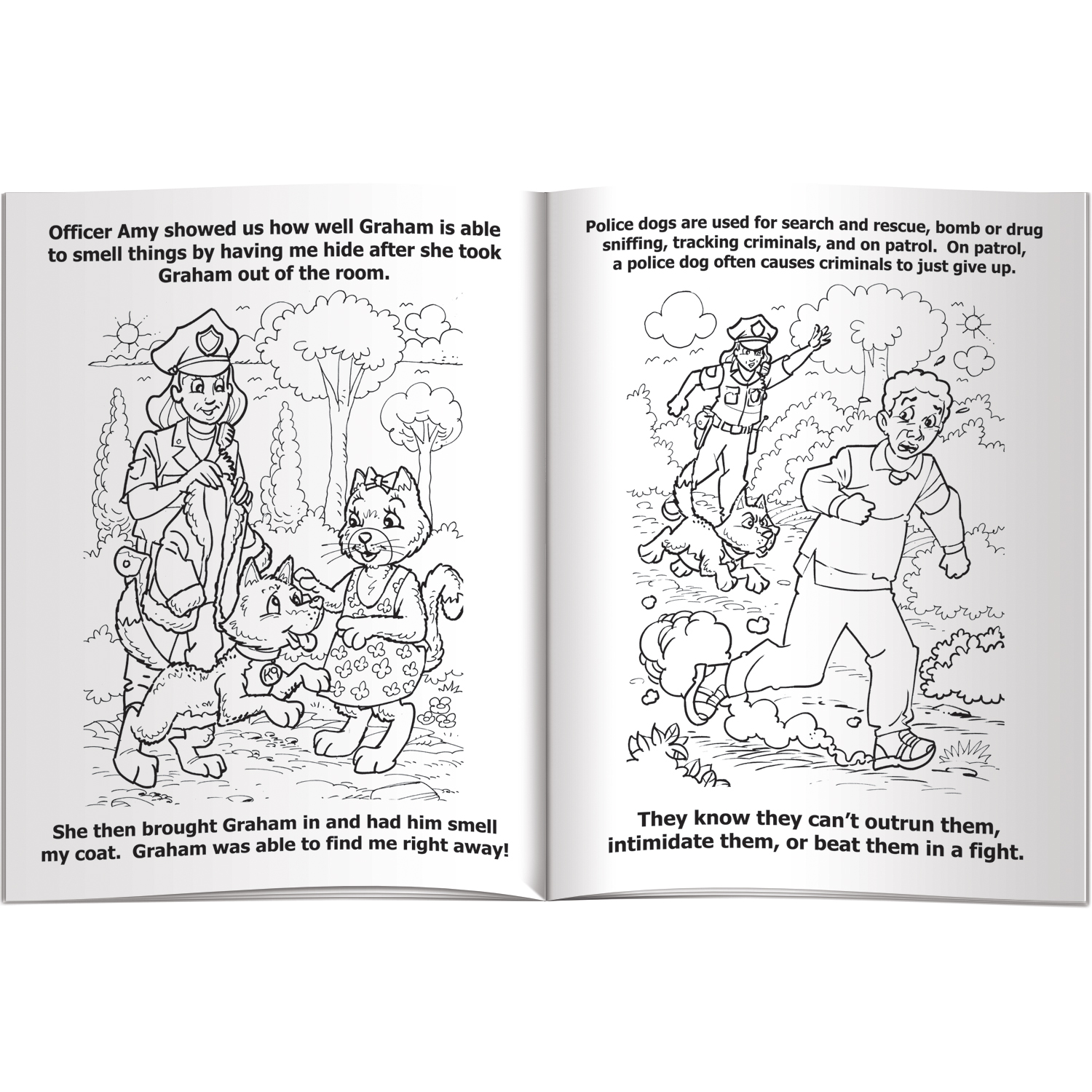 - A fun and educational 16 page coloring and activity book featuring a complete storyline. Creative characters help teach children why friendly police offers should be their heroes. Includes a 2-color imprint on the front cover. CPSIA compliant.
