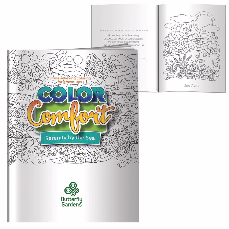 - This adult coloring book features 12 beautifully rendered images of beach scenes accompanied by inspirational messages. A creative way to promote relaxation, the thick velvet stock paper even allows you to frame your works of art. Includes screen print imprint on the front cover.