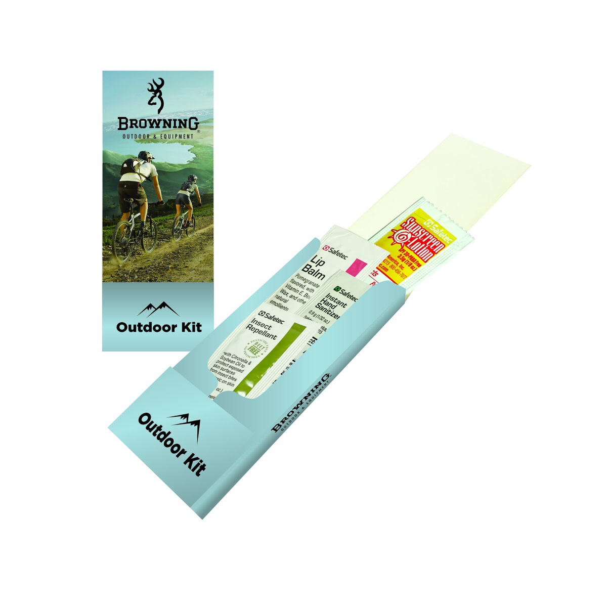 - Includes hand sanitizer, insect repellent, lip balm, and sunscreen