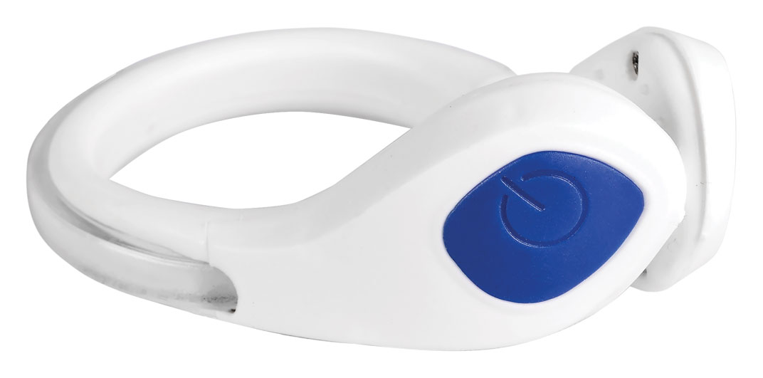 - ? A unique safety light that clips to the heel of your shoe.? Press the button once to activate a bright steady light, or press twice for a flashing strobe.? Crafted for most nighttime activities!