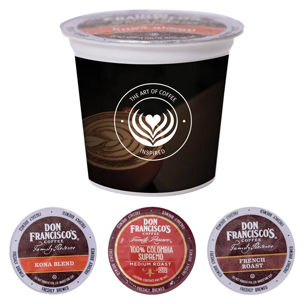 - We proudly feature single-serve pod of Don Francisco's Coffee (Kosher). Available in French Roast, Kona Blend or Colombia Supremo single-serve pods. Compatible with Keurig® coffee makers.
